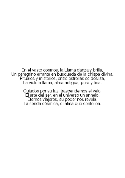 Cada capítulo está cuidadosamente estructurado para guiarte en un viaje de autoconocimiento, sanación y conexión cósmica. Descubre cómo la Llama Violeta puede transformar no solo tu vida, sino también el mundo que te rodea, al elevar tu vibración y contribuir al bienestar colectivo.