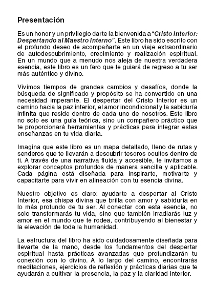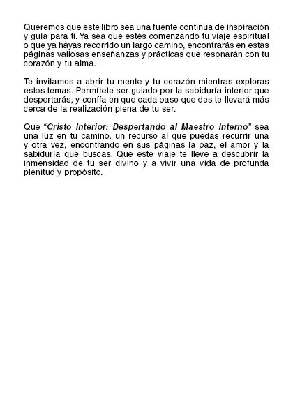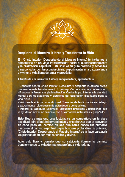 Este libro es ideal tanto para principiantes en el camino espiritual como para aquellos que ya han avanzado en su búsqueda personal. Al conectar con tu Cristo Interior, transformarás tu vida, irradiando luz y amor en el mundo que te rodea y contribuyendo al bienestar y la elevación de toda la humanidad.