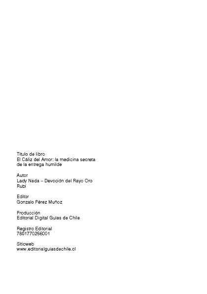 En este libro la Maestra Lady Nada, desde las primeras páginas —presenta al cáliz como símbolo del corazón que se vacía para que la vida divina pueda descender— hasta sus enseñanzas sobre servicio, purificación interior, gratitud, silencio y reconciliación, la obra acompaña al lector en un recorrido íntimo y profundamente sanador.