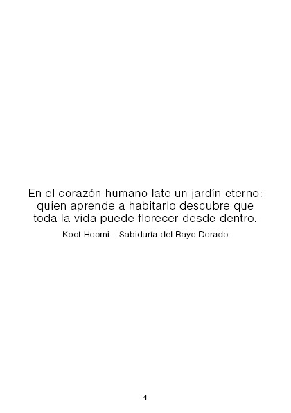 El Jardín del Corazón es una obra dedicada a quienes buscan una espiritualidad viva, suave y profundamente transformadora. Escrito por Koot Hoomi – Sabiduría del Rayo Dorado, este libro guía al lector hacia un camino interior donde la conciencia se vuelve jardín, la atención se vuelve agua, y cada gesto cotidiano se convierte en un acto de belleza y verdad.