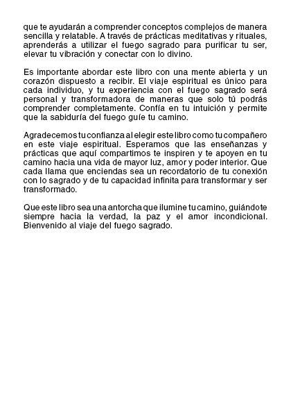 Escrito de manera accesible, «El Libro del Fuego Sagrado» está diseñado para que cualquier persona, independientemente de su trasfondo espiritual, pueda beneficiarse de sus enseñanzas. A medida que avances en este viaje, descubrirás cómo el fuego sagrado puede ser tu compañero en el camino hacia una vida de mayor luz, amor y poder interior.