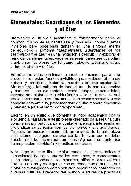 Disponible en formatos PDF, «Elementales: Guardianes de los Elementos y el Éter» es la guía definitiva para cualquier buscador espiritual, amante de la naturaleza o curioso por las fuerzas invisibles que modelan nuestro mundo.