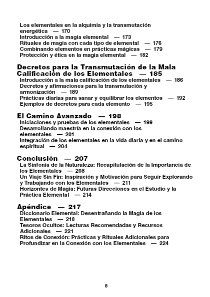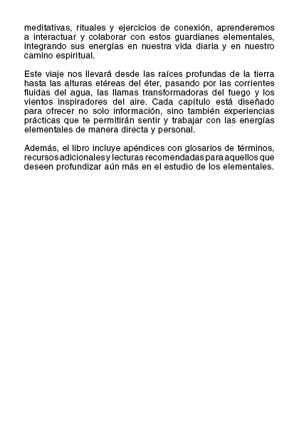 Cada capítulo de este libro te llevará a un viaje profundo por las características y simbolismos de los elementos, ofreciendo meditaciones, rituales y ejercicios para que puedas integrar las energías elementales en tu vida diaria. Desde la estabilidad de la tierra hasta la fluidez del agua, la pasión del fuego, la inspiración del aire y la unidad del éter, aprenderás a trabajar con estas poderosas fuerzas para lograr un mayor equilibrio y armonía en tu vida.