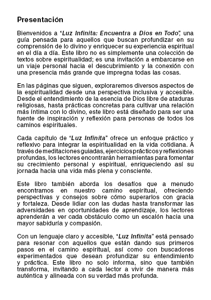 Explora la presencia divina en todos los aspectos de tu vida con "Luz Infinita: Encuentra a Dios en Todo". Disponible en formato PDF, esta guía espiritual te ofrece herramientas para integrar la espiritualidad en tu vida diaria y transformar tu camino hacia la plenitud.