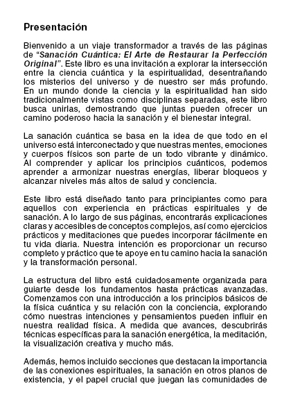 Diseñado tanto para principiantes como para aquellos con experiencia en prácticas espirituales y de sanación, este libro te proporciona explicaciones claras de conceptos complejos junto con ejercicios prácticos y meditaciones que podrás integrar fácilmente en tu vida diaria. Cada capítulo te llevará desde los fundamentos de la física cuántica hasta prácticas avanzadas de sanación energética.