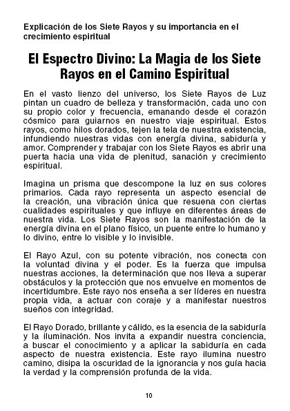 Con un estilo accesible y profundo, «Siete Rayos de Luz» es una herramienta indispensable para quienes buscan elevar su vibración y contribuir a la evolución de la conciencia planetaria. Disponible en formato PDF, este libro es tu compañero en el camino hacia la realización espiritual y la expansión de la conciencia.